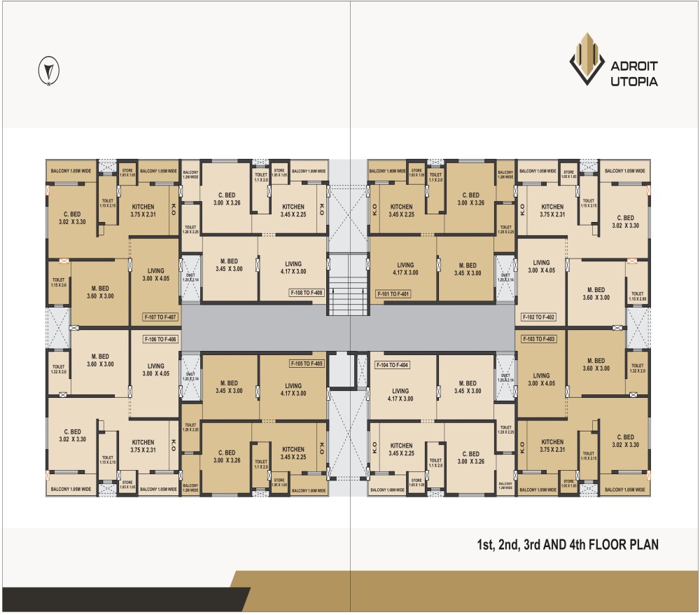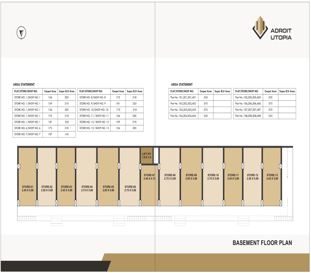 32 flats (2BHK) and 26 commercial shops are there in Adroit Utopia project.
